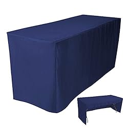 6' Fitted Tablecloth Table Cover Trade Show Event Open Back Side - 3 SIDED NAVY BLUE Fit standard 6ft table 72"(6')L x 30"W x 29H 100% Woven Polyester 3 Sided (Open Back) Durable Polyester, Stain+Wrinkle Resistant