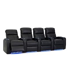Octane Seating Flash HR Series Home Stadium Seating - Black Top Grain Leather - Power Recline - Motorized Headrest - Lighted Cup Holders (Row of 4, Black)