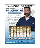 - Restore your confidence and get back your smile with our new patented Temporary Tooth Kit Pro Series. Unlike the alternatives on the market, this kit actually contains 40 various sized simulated teeth all molded in the shape of real teeth. Simply select a tooth, remove it from the set, cut it to the desired shape (if needed) , add the fitting material and then insert it where your missing tooth is! You can replace any missing tooth in minutes with an actual realistic looking molded temporary tooth. Many other tooth replacement kits only come with beads that you have to form into the shape of a tooth. Many times the beads stain very quickly and need to be replaced often because they become discolored. With our patented Tooth Kit, the temporary tooth does not stain so you don't need to keep purchasing more material because the tooth becomes too discolored. You can wear the same tooth as long as you need to! No product out there has a track record like Instant Smile Teeth does. For more than ten years, our company has given millions a secure smile!