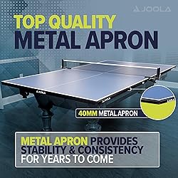 - Get the best of both worlds by converting your billiard, dining, or outdoor picnic table into the ultimate regulation-size table tennis table, complete with a metal apron! Now you can have The JOOLA Conversion Top with Metal Apron is similar to JOOLA's best-selling Inside Table – minus the undercarriage. The conversion top comes in two separate halves and features a clamp-style competition-grade net and post set ensuring a quick and easy 5-minute set-up. The conversion top features a multi-layer painted, blue, 15mm thick engineered wood surface. The metal apron features black matte powder coating and silkscreen JOOLA logos increasing durability and allowing you to show off that JOOLA flair. In addition to giving the conversion top an authentic table tennis table look, the 1.5-inch steel tube aprons support the conversion top to ensure the table top remains flat and provides consistent play for years to come. The underside consists of 10 soft EVA foam pad stickers that create a protective cushion between the conversion top and your billiard table. Maintain your ease of mind and easily switch between billiards and table tennis without damaging any equipment. Recommended for billiard tables up to 8 feet in length. Start playing like a champion with equipment developed for champions!