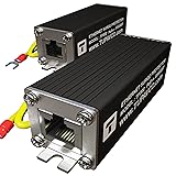 - 2 Pack (Pair) Ethernet Surge Protector is a surge protection device (SPD) that is inserted inline on an RJ45 CAT6/CAT5/CAT5e cable to prevent damage of electronic networking equipment.The thunder arrestor also offers secondary protection, which will arrest EMF induced surges (nearby lightning ethernet).Ethernet Surge Suppressor TP302 use a Gas Discharge Tube (GDT) on all 4 pairs (8 wires).Gigabit (GbE) 10/100/1000 Mbps data rate transfer supports an ultra-fast maximum data rate of 1 Gigabit per second.POE Surge Protector allows a single RJ-45 cable to provide both data connection and electric power to device.Mounting flange on the both sides of lightning suppressor allows easy mounting to a wall, network panel, cabinet, or rack attaching by screws (not included).The ethernet ground wire (11 Inch - 12 AWG) on the surge protector needs to be connected to ground through the shortest path.The lightning arrestor can be used with unshielded twisted pair (UTP) or shielded (STP) cables. The aluminum enclosure allows shielded current to be passed through the metal case of the network surge protector. Ethernet Surge Protector TP302 – LAN Network ESD Thunder Lightning Surge Arrester Gigabit PoE+ RJ45 CAT5 CAT5E CAT6 Suppressor Ethernet Surge Protector TP302 offers multiple stages protection Gas Discharge Tubes.Gigabit ethernet arrestor is capable of protecting a wide array of valuable technology products. Small, extremely well-built, provide deep protective measures for numerous devices. In the event of lightning strikes, or other elements that put your devices at risk, the surge arrestors goes to work immediately. LAN surge protector has a distinct reputation for ethernet lightning protection reliability. Ethernet Suppressor is easy to set up, and it is just as easy to use. These network surge protectors represent one of the most cost-effective solutions for protecting your devices and networks.