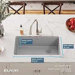 Elkay ELGU13322GS0 Quartz Classic Single Bowl Undermount Sink, Greystone