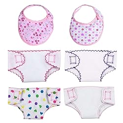 DC-BEAUTIFUL 4 Pcs Diapers, Underwear and 2 Pcs Bibs for 14-18 Inch Baby Dolls, Suitable for Infant Baby Girls Boys