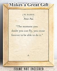 Lone Star Art J.M. Barrie - Peter Pan - The Moment You Doubt Whether You Can Fly - 11x14 Unframed Typography Book Page Print - Great Inspirational Gift and Decor for Nursery and Children's Room