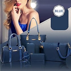 ♥ Composition: These whole set is composed of a tote bag , a top-handle bag, a shoulder bag, a hand bag, a wallet and a key case. ♥ Dimension: The tote is 11.8x5.1x11.8 inches and weights 1.06 pound. The top-handle bag is 10.6x5.1x7 inches and weights 0.68 pound. The shoulder bag is 11.4x3.9x8.7 inches and weights 0.44 pound. The handbag is 6.3x2.4x3.5 inches and weights 0.15 pound. The wallet is 7.5x0.8x3.9 inches and weights 0.35 pound. The key case is 2.4x10.5 inches and weights 0.08 pound. Manual measurement will have errors. ♥ Material: The fabric of this bag is nylon, waterproof and wear resistant. The zipper and buckle of the bag are hardware, and the lining of the bag is polyester. ♥ Structure: The inside of this bag has a mobile phone pocket, a document pocket and a zipper pocket, a large capacity can hold a lot of things. ♥ Occasion: This bag is suitable for every occasion of life, shopping, travelling, working, studying etc. It is quite roomy and plenty of space to carry all you daily essentials, Hold Your Laptop,Phone, Wallet, Cosmetic, Umbrella and Other Things. Sturdy and Comfortable