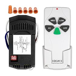 💛This universal Ceiling Fan Remote Control kit is specifically made for Hampton Bay and Harbor Breeze fans,hunter Home Decorators Collection, Litex,Westinghouse, Honeywell and other brands etc,but works with almost all regular ceiling fans.Works most major 3-speed AC ceiling fans 💛Fan button controls 3-speeds (high/medium/low).Please note that the receiver does not have the function of Reverse.but it compatible with the ceiling fans which with reverse switch and will works well with the fans in the reverse state. 💛LIGHT/DIMMER button only controls the brightness of incandescent and halogen lamps, also compatible with some dimmable LED/CFL bulbs,but if your origianl LED/CFL bulbs are Not Dimmable, and the remote only control the On/Off in this case. 💛SELF-DEVELOPED RECEIVER IS 250W, which far beyond the market's carrying power capacity, the superior rated power capacity carrying allows you to access more light bulbs, greatly increase the time of useUses 2 relays and is an upgraded component. The upgraded dimming function of the relay is better than the thyristor. Our receiver is safer and has better carrying power for fans and incandescent lamps. The upgraded receiver size is smaller than the receiver using thyristors. 💛 Package Includes Remote Control *1, Receiver *1, Wall Mount Holder *1, User Guide *1, Wire Nuts *6, Screws *2 . NOTE: If you have PULL CHAINS SWITCH, before using the wireless remote control, use the PULL CHAINS SWITCH to turn the wind speed to maximum and turn the fan light on. Only in this way can the PULL CHAINS SWITCH and wireless remote control be used together.