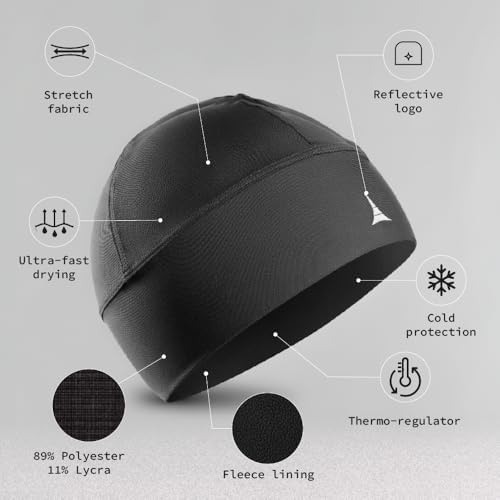 Skull Cap Helmet Liner Running Beanie - Ultimate Thermal Retention and Performance Moisture Wicking. Fits Under Helmets