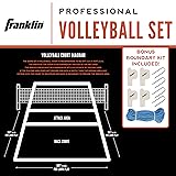 FUN FOR EVERYONE: This go-to, complete volleyball set is a perfect gift for the whole family that can be enjoyed by all ages for unforgettable outdoor fun EASY TO ASSEMBLE NET: The easy assemble net is made 1. 25" diameter steel poles to support the 30' x 2' net. The net assembles to be 8' high and can be attached to the ground with the included ground stakes and guy ropes for extra stability ALL IN ONE SET: This set comes with (1) synthetic rubber volleyball, (6) ground stakes and guy ropes, (1) court marking kit, (1) inflation pump, and a deluxe carry bag to help transport and store all the components with ease! PORTABLE: The included carrying bag makes it easy to bring this set the beach, backyard, or your next party. Plus, when you're done, it's easy to pack up and store until next time FAMILY FUN: Create memories with family and friends that will last a lifetime with this complete volleyball set from Franklin Sports