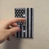 - About The Product: Turn that boring switch plate into a distinctive piece of art! Graphics and More switch plates are made of durable plastic and then covered with a specially coated, printed vinyl that resists scratches and normal wear and tear. The result is a unique switch plate that adds style to any space. The cover is approximately 2.8" (7.1cm) x 4.5" (11.4cm) in size, and is a universal fit for all single light switch toggles. About The Design: This design shows a rustic, subdued style of the stars and stripes.
