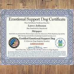 Official Certified Emotional Support Dog Customized Certificate | Includes Handler/Dog PVC Info Card & Registration at US Service Dogs Registry