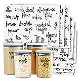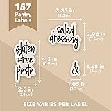 - Talented Kitchen offers a 157-Piece Set of Pantry Labels for Food Containers, crafted to enhance kitchen organization with elegance and efficiency. These adhesive labels feature a refined black script on a clear background, making them ideal for organizing seasonal ingredients such as spices and baking supplies. As the demands of everyday cooking increase, these labels are perfect for maintaining a streamlined pantry, ensuring that frequently used items are easily identifiable and accessible. Designed for both professional chefs and home cooks, these food container labels transform any kitchen into a model of efficiency. They are suitable for labeling jars, containers, and storage bins, simplifying the process of identifying pasta, flour, sugar, and other pantry staples. The set includes 139 preprinted pantry labels and additional stickers for numbers, ampersands, and plus signs, allowing for tailored organization. Constructed from durable vinyl, these labels are water-resistant, ensuring long-lasting durability. This makes them suitable for various surfaces, such as glass jars and baskets, and particularly useful in kitchens where space is at a premium. The labels' sleek design complements both modern and traditional kitchen aesthetics. Perfect for those who appreciate both style and practicality, these pantry organizer labels help maximize kitchen space without sacrificing visual appeal. Please note, this set includes the labels only; food storage containers are not included. With Talented Kitchen's labeling system, enhance your kitchen's functionality and embrace a lifestyle that values both organization and aesthetic charm. Experience a more enjoyable cooking process by creating an efficient pantry with these versatile pantry labels.