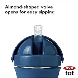 Almond-shaped, spill-proof straw conforms to tot's mouth and minimizes mess Straw valve opens as soon as tot's lips touch spout for easy drinking Hinged cap closes to create a leakproof seal and is removable for thorough cleaning Soft, comfortable, non-slip grip with convenient measurement markings Dishwasher safe and Airtight leakproof BPA free, PVC free and Phthalate free