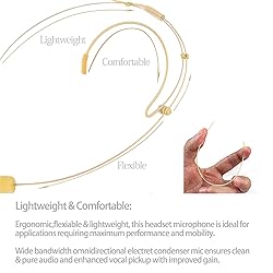 Premium Headset Microphone - Slim double earhook mic provides dependable, professional sound quality; comfortable & durable, perfect for all kinds of live performances & productions. Crystal-Clear Voice & Sound - Powerful, High sensitivity headworn microphone amplifies your voice, stable signal, zero delay & crisp, vibrant audio transmission for indoor & outdoor activities. Convenient & Lightweight Design - Beige over ear design, slim, cozy, in addition, this microphone features a supremely light-weight build. Compatibility - 3.9 feet (1.2meters) cable, 3.5mm stereo female screw lock plug compatible with Sennheiser EW100 EW300 EW500 SK100 SK300 SK500 EK100 EK300 EK500 EK2000 G1 G2 G3, EWD1, SK D1 / Line 6 X2 wireless microphone system with 3.5mm locking jack plug input (NOTE: for Sennheiser only !!! other brands won’t work because the inside wiring may not the same,this is condenser microphone and need get power from the devices, Please make sure your device will supply power to the microphone). Widely Applications - Designed for use on stage, houses of worship, presenters, broadcasters, TV presenters, lecturers, musicians, actors, singers and any other applications requiring minimum microphone visibility with maximum comfortability and hands-free operation.