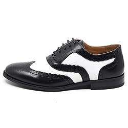 - Classic 2 Tone colors " Black / White, Black / Red & Tan / White " , elegant look dress shoes featuring , faux leather upper, leather lining , classic perforated wingtip design cushioned footbed for comfort, and synthetic outsole.