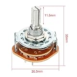 - Description: 2 Pole 4 Position design, plastic metal material, easily turned. Widely used on radio, TV, industrial machine control unit, or other electronic devices. Specification: Product Name : Band Selector Rotary Switch Package Content : 2Pcs x Rotary Switch Model : RS25 2*4 Material : Metal, Plastic Contact Type : 2 Pole 4 Position,1Deck Pin Number : 10 Fit Mounting Hole Diameter: 9mm / 0.35" Rotating Shaft Dia : 6mm / 0.24" ; Shaft Length : 11.5mm/ 0.45" Dimensions : 38 x 26.5mm / 1.5" x 1.04"(Max.H*W)