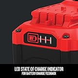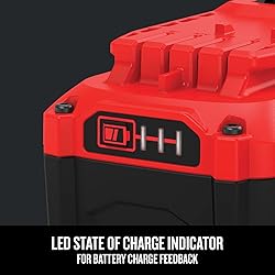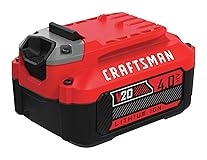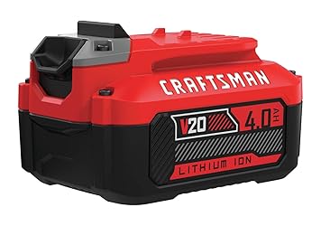 EXTENDED RUNTIME: CRAFTSMAN battery is made for heavy duty jobsite applications IMPROVED POWER: Premium grade high energy cells LONGER LIFE: Resulting in an extended battery life BATTERY CHARGE FEEDBACK: 3 LED State of charge indicator MAXIMUM PRODUCTIVITY: No memory and virtually no self-discharge V20* 4.0Ah Lithium Ion Battery provides extreme runtime for heavy duty jobsite applications