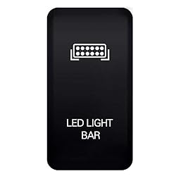PERFECT FIT - This high quality SPST (Single Pole Single Throw) ON-OFF push switch is manufactured to fit in the OEM space available in your Toyota car. THE SURFACE SIZE IS 1.54" X 0.83", PLEASE CHECK WHETHER THE SIZE OF THE SWITCH IS COMPATIBLE WITH YOUR CAR BEFORE PURCHASING EASY INSTALL - This button switch is rated at 3Amp 12V, comes with connector wire kit, easy to install. It is simple to connect the switch: The Green wire goes to the battery, the red w/yellow stripe closest to green wire goes out to the relay; the black wire connects to the ground, while the red w/yellow stripe closest to black goes to the dash WIDE APPLICATION - The switch fits on most model Toyota's vehicles, PLEASE SEE LIST BELOW FOR VEHICLE COMPATIBILITY, and make sure it fits before purchase. COMPATIBLE VEHICLES: # Toyota FJ Cruiser 2007-2015, #Toyota Fortuner 2005-2014, # Toyota Hilux 2005-2014, # Toyota Tacoma 2005-2011, # Toyota Tacoma 2012-2015 (Left Side ONLY), # Toyota Highlander 2001-2007, # Toyota Tundra 2005-2006 (Center Console if equipped), # Toyota 4Runner 2003-2009, # Toyota Prado 120 Series 2003-2009 SUPREME QUALITY - Laser etched directly onto the switch face using modern high tech laser engraving equipment to ensure long image life. Features a backlit panel that illuminating when the switch is turned on. There are 2 LEDs inside the switch: UPPER Symbol/ LOWER Letters. Easy for you to know the working status STURDY DURABILITY - The switch is made out of heavy duty ABS plastic and come in a mate black surface color. It has short circuit protection to protect your vehicles, ensure years of service. Safe and long lasting
