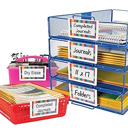 ORGANIZE WITH EASE: Streamline your classroom storage with these versatile label holders, perfect for labeling and identifying bins and baskets VERSATILE LABELING SOLUTION: These plastic label holders securely clip onto storage bins, allowing you to easily change and update labels as needed STURDY AND DURABLE: Made from high-quality plastic, the label holders are built to withstand daily classroom use & maintain shape. Our label holders are designed to fit most standard storage bins INCLUDES: This set includes 12 clip-on plastic label holders (4-1/2" x 2-1/2" each), 24 colorful card stock labels (4-1/4" x 2-1/4" each), and 12 clear plastic label covers (4-1/4" x 2-1/4" each) QUICK AND EFFICIENT: Simply clip these basket label holders onto your bins for hassle-free labeling, helping you create an orderly and inviting learning environment