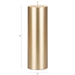 COMPLIMENT EVERY ROOM: Looking for ways to improve your home décor without having to spend a small fortune? Probable searching for our candles, right? With these passionate gold round pillar candles, you can decorate and add warmth to your house in seconds. BURN FOR UP TO 60 HOURS: Forget all those decorative candles that would burn out in just a few hours and enjoy long lasting candle burning! The cotton wick ensures up to 60 hours of consecutive burning. FIT EVERYWHERE YOU WANT: Their generous size 3 inch x 9 inch round pillar candles makes them ideal for all kinds of decorations and even arts and crafts. They are not way too small, but not bulky either. Put some in the study room, on the floor, TV set, kitchen countertop or your bathroom. DECORATE ANY SPECIAL OCCASION: These round pillar gold candles are ideal for all your special events and ceremonies. Perfect for wedding receptions, birthday parties, baby showers, use as party favors, table centrepieces, window décor and so many other uses. HAND POURED CANDLE : All of the candles are meticulously handmade with love and passion. Place them in bowls with water, tall glass vessels, around flowers, in jars with pebbles, over antique trays or on the stairs!