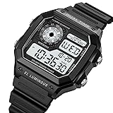 PASOY Men's Digital Multi-Function Watches Dual Time Alarm Stopwatch Countdown Backlight Waterproof Watch