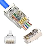 ✅RJ45 CAT6 CAT5 CONNECTORS not only let you make enternet cables in custom lenths without breaking the bank,but also can work effectively with every model of pass through crimper tool and RJ45 cat5 cat6 connectors for 24AWG cable .(NOTE:Please straighten the wires and cut it neatly in order to Pass Thru easier) ✅Enhances signal integrity and clarity by reducing the distance between wire twists and contacts.gold plated 8p8c 2prong makes the contact attach to the core closer and the data flow stable. ✅Lower pair-to-pair crosstalk -- fully shielded products lower pair-to-pair crosstalk, alien crosstalk and considerably improved immunity to noise at all frequencies,especially above 30 mhz when cable balance starts to significantly degrade. ✅Foldable shrapnel-even if the shrapnel is folded 180 degrees and then crimped with pliers, you can still hear “click" when you insert it into the notch again. ✅Package List: 20 pieces cat5e cat6 pass thru connectors( Do not fit 23awg cable)
