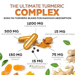 POWERFUL TURMERIC GLUCOSAMINE & GINGER SUPPLEMENT: Our Premium T3 Turmeric Curcumin Complex 2000mg; with 95% Standardized Curcuminoids and Ginger; and fortified with 15mg BioPerine provides maximum absorption and bio availability CURCUMIN WITH BLACK PEPPER FOR MAXIMUM ABSORPTION: Our turmeric curcumin capsules include BioPerine black pepper extract for optimal bioavailability; This turmeric with black pepper and cucurmin turmeric with black pepper blend helps your body absorb the active compounds found in curcumin supplements and turmeric black pepper supplement formulas COMPLETE JOINT & MOBILITY SUPPORT: Featuring glucosamine chondroitin, ginger, and MSM, this turmeric curcumin with glucosamine formula doubles as a turmeric and ginger supplement; It’s perfect for anyone seeking ginger turmeric capsules, turmeric pills, or tumeric ginger for comfort and everyday movement support TRUSTED QUALITY AND PURITY: Our turmeric curcumin with black pepper formula is bottled in the USA in a GMP certified facility; Whether you call it tumeric curcumin, turmeric curcumin with black pepper, or simply turmeric ginger, you can rely on these turmeric capsules for consistent strength and dependable results TURMERIC CURCUMIN SUPPLEMENT WITH GLUCOSAMINE: best bioperine black pepper capsule capsules chondroitin circumin complex con cucumin cucurmin curcuma curcumina 95% curcuminoids extract fsa ginger gmo herbal joint support mg nature negra pimienta pastillas natures nutrition pastillas pill pills piperine pure supplements timeric tumeric 1000mg 1500mg 2000mg 2250mg 500 500mg vitamins
