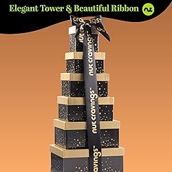 A SELECTION OF 12 GOURMET NUTS & DRIED FRUITS – Enjoy a handpicked mix of Dried Craisins, Dried Kiwi, Dried Papaya Chunks, Dried Peaches, Dried Pears, Honey Glazed Pecans, Honey Roasted Peanuts, Raw Walnuts, Roasted Salted Almonds, Roasted Salted Cashews, Roasted Salted Pistachios, and Toffee Peanuts — all freshly packed for premium taste and crunch SIX GIFT BOXES IN ONE IMPRESSIVE TOWER – Each layer offers a delightful variety of sweet and savory treats, perfectly balanced between chewy dried fruits and crunchy roasted nuts ELEGANT BLACK & GOLD PACKAGING – Sleek and sophisticated, this gift tower features six stacked boxes tied with a luxurious gold ribbon — an eye-catching presentation that elevates any occasion THE PERFECT GIFT FOR ANY OCCASION – Ideal for holidays, birthdays, corporate events, thank-you gifts, or get-well wishes. A gourmet gift that’s sure to impress family, friends, or clients alike PERSONALIZE YOUR GIFT MESSAGE – Don’t forget to check “This is a gift” at checkout and include your custom message — because a thoughtful note makes a great gift even more meaningful