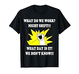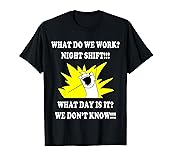 Night Shift Worker - Night Shift Worker Reads: WHAT DO WE WORK? NIGHT SHIFT! WHAT DAY IS IT? WE DON'T KNOW! - A great gift for your favorite nurse, police officer or firefighter - ou've hung your "shift worker sleeping" sign, you've got your sleeping WHAT DO WE WORK NIGHT SHIFT | 3rd SHIFT FUNNY. Off to bed with you. for Night Shift Nurses - Funny, Clever Night Shift Nurse with Distressed - Gift Christmas Gift for a Nurse who works the Night Shift Lightweight, Classic fit, Double-needle sleeve and bottom hem