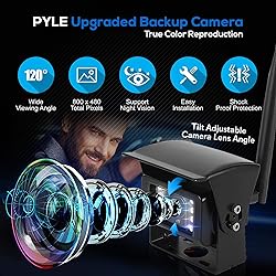 WIRELESS SET UP: A car backup camera wireless monitor system that can be set up easily, no long wires required. Comes w/ a wireless transmitter with a distance of up to 330+ ft. to instantly send videos from cam to screen. Has a tilt adjustable angle 7” LCD SCREEN: The Pyle vehicle video monitor system comes with a slim 7" LCD display w/ 800x480 video resolution, built-in 2.4Ghz wireless video receiver and NTSC/PAL video system, and quad view display ability so you can monitor all 4 cams at once UNIVERSAL MOUNT: This safety dash cam has a universal car / automobile mounting ability and includes all necessary cables and wiring for hassle free installation. Used for car, truck, bus, van, trailer, mobile vehicle applications NIGHT VISION / WATERPROOF: This rear view backup cam for cars and other automotive vehicles is IP-68 marine grade waterproof to combat bad weather. It's also has a night vision ability for all day and night video monitoring and assistance DVR RECORDING: This camera kit has a DVR recording ability and file saving via SD Card Slot to provide evidence in case of an accident and to assist for proper parking / reversing without relying on side mirrors alone. Comes with a remote control