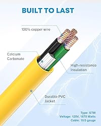 - Specifications: Length: 12 inch. Color: Yellow and Black Cable: 10/3 gauge, 100% copper Voltage: 125 V,3750W USING:15A male to 30A famale Material: PVC Sleeve and Copper Code certification:UL、ETL