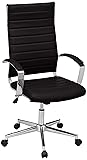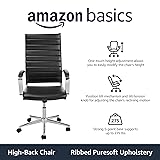 Amazon Basics High-Back Swivel Office Chair with Lumbar Support, Ergonomic Ribbed Faux Leather, Adjustable Height, 45.25" x 24.75" x 23.25", Black