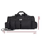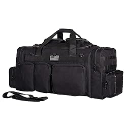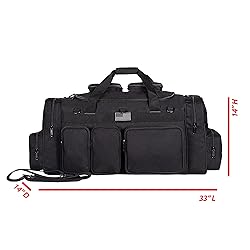 🔫 HEAVY DUTY LARGE RANGE DUFFEL: This tactical range duffel bag is composed of heavy duty water resistant polyester that's durable enough for daily use. Inner PVC lining provides protection from water spillage on the inside or outside. 🔫 QUALITY TRAVEL BAG LARGE OPENING: High Quality Travel Bag with Main compartment that is a wide U-shaped opening for maximum opening space without compromise to functionality. Side pockets also have large openings relative to their size. 🔫 SAFETY TACTICAL RANGE BAG: Main compartment features lockable zippers to keep unwanted people out of your belongings and firearms. 🔫 DURABLE QUALITY SPORT GYM BAG WITH COMFORT: Durable Sport Gym Bag Features an adjustable padded should strap and wrap-around Velcro strap handles. 🔫 Large Tactical Duffel Bag DIMENSIONS: 33"L x 14"W x 14"D