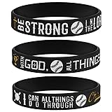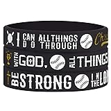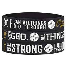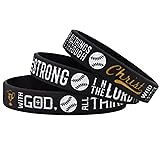- This pack of 3 "Power of Faith" Baseball Bible Verse Silicone Wristbands with Motivational Sayings silicone rubber bracelets features positive messages to help inspire one towards their goals Americanism Partriotic Spirit. A suitable gift for business people, students, athletes, and fitness professionals, this set of wristbands is engraved with encouraging words and phrases. This pack of 3 silicone bracelets for Baseball players includes 3 unique designs with inspirational quotes: EPHESIANS 6:10 - "Be strong in the Lord and in his mighty power."; EPHESIANS 6:10 - "Be strong in the Lord and in his mighty power." and PHILIPPIANS 4:13 - "I can do all things through Christ who gives me strength.". These silicone rubber wristbands are an essential accessory item for high performance Baseball players, coaches, trainers, and fans. They make suitable gifts for Baseball team members and can help to boost motivation to train and play harder. Size: 8 inches around (Adult unisex size for men or ladies; slightly stretchable)