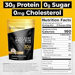 BUILD LEAN MUSCLE: Introducing a Revolutionary New Protein Formula that promotes muscle, gut and brain health. Protein powder totally reinvented. Contains 30 GRAMS OF PROTEIN PER SERVING paired with 3g of the most important muscle-building amino acid, L-leucine. The optimal nutrients in optimal amounts to build lean muscle mass. AMINO OPTIMIZED: Protein is comprised of 9 ESSENTIAL AMINO ACIDS (3 BCAAs and 6 EAAs) that must be present in the right amount and ratio of each serving for optimal body composition. Transformation Protein powder has the ultimate blend of collagen, egg, and plant proteins to achieve the ideal amino acid profile, in amount and ratio, to help you build muscle quicker and recover faster. MCT OIL + COLLAGEN: Fuel the body and the mind. Medium Chain Triglycerides provide faster fat-burning and increased energy helping you to stay focused and get the most out of your workouts. Grass-fed, pasture-raised collagen support bone and joint health to help your body to recover faster. ABSORB MORE PROTEIN: Enriched with digestive enzymes and probiotics to enhance digestion and absorption of your protein. With 15 billion CFUs of bacillus coagulans, a probiotic that uniquely survives the harsh acidity of the stomach, enabling it to optimize the healthy bacteria effect in the GI tract and enhancing the absorption of protein. PURE & CLEAN: No whey, No soy, No dairy, No Lactose, and No gluten. Our easy to mix, luxury protein blend is made with the highest quality ingredients.