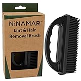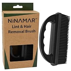 - The Ninamar Lint and Hair Removal Brush works for everything! Use it to clean pet and human hair from rugs, car upholstery, mops, cloths, dry mops, clothing, furniture, carpet, bedding, and pet beds. Works for dog hair, cat hair, human hair and more! Works much easier than plucking hairs off by hand. The static cling properties of the brush help attract hair to the bristles, making cleaning easy. The rubber like bristles are non-damaging so they can be used on almost any material without worry of damaging the fabric. It is not only easy to clean any material of hair, but it is also easy to clean the brush itself afterward. Just pull the fur off with your fingers and put in the trash (or compost pile). You can also easily rinse it off with soap and water.