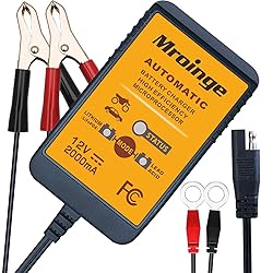 - Mroinge MBC022 12V 2A Battery Charger is much more than a trickle charger. It has a smart brain, is lightweight, compact, fully automatic and very easy to use especially in small spaces, that digitally controls the 5-stages of battery charging (Initialization, trickle current, constant current, constant voltage and floating charge). the charger come with power down memory function, so the charger will re-start to charge the battery automatically when the main power recovered. This battery charger will keep the battery fully charged so that it is ready to go always. It has a microprocessor controlled fully automatic charger and maintainer and is designed to extend the life of any 12V lead acid and 12V-Lithium(LiFePO4) battery commonly used in automobiles, motorcycles, ATVs, personal watercraft, RVs, boats, golf carts, back-up generator systems, etc. Any vehicle or battery-operated piece of equipment not used on a daily or regular basis is a candidate for a Mroinge charger. the advanced technology will bring the battery back to a full charge without overcharging and then float or maintain the battery for an indefinite period of time. The Mroinge comes equipped with alligator clips and O-ring terminals for easy hook up, output cord total length of 12ft. Our products to high-quality low-cost, which are appreciated by customers because of excellentprice versus performance ration and high quality. Specification: Input: 100-120VAC 50/60Hz 0.6A Output: DC 12V 2 Amp Suitable battery type: 12V lead-acid and 12V Lithium (LiFePO4) Charging Battery: 7-85Ah Maintaining Battery: 7-150Ah Package: 1 x Battery Charger 1 x Alligator Clips 1 x Battery Rings 1 x User Manual ATTENTION: This unit is only suitable for one type of lithium battery, It is 12V Lithium(LiFePO4) only, Other types of lithium battery does not support.