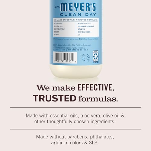 Mrs. Meyer’s Clean Day Liquid Hand Soap cleans hands thoroughly while helping keep skin soft and moisturized. Designed for frequent use, the formula removes everyday dirt without leaving hands feeling dry. Just clean hands, nothing extra.