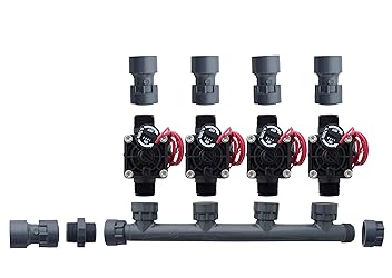- Our Hunter standard manifold systems come with the reliable Hunter PGV101-MM valves with flow control. These are ready-to-install kits that take the hassle out of specifying, configuring and installing quality valve systems. The inlet to the manifold and the outlet of each valve contains an adaptor (slip), which is used to provide a connection into and out of the manifold for 1 inch PVC piping. Our manifold kit comes with 4 valves manifold with a slip adaptor. Dura manifolds and fittings are manufactured from schedule 40 construction that is durable with o-ring fittings. O-ring seals are for an easy and tool-less installation. Entire valves can be easily replaced without digging up the valve pit and cutting into the manifold.