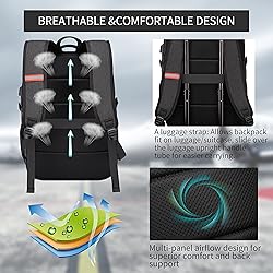 Large Capacity and Organized: Men travel backpack owns 20+ independent pockets for large storage and organization for small items. 4 spacious main multi compartments with many hidden pockets can accommodate lots of stuffs like college supplies, travel accessories, stationery, notebook, cord organizer, side elastic net pockets conveniently hold travel gear umbrellas or water bottles. Ideal book bag backpack great gifts for family and friends. Multipurpose RFID BACKPACK & ANTI THEFT: An RFID pocket with RFID function helps protect personal data encoded on your credit card, ID card and passport.The big backpack is perfect for indoor/outdoor activities. Served as sturdy large backpack, large school backpack for teen boys/girls, large laptop bag or spacious college backpack, you can use it at anywhere for International travel, camping, hiking and overnight trip. Practical and Convenient: External USB port with set-in charging cable offers convenient charging your cellphone. A hole for headphone outside gives easy access to earphone usage.Also, the student backpack with a sturdy rugged handle on the top for carrying, side compression straps keep the exclusive backpack at whatever size you requires. As a men's/women's backpack, you will enjoy it's fashionable, comfortable and convenient everywhere.(POWER BANK is not included) FUNCTIONAL & Comfortable: A well-knitted luggage strap is quite convenient to fix the backpack on the trolley of your luggage, making your journey and travelling more relaxing. Soft multi-panel ventilated padding makes maximum back air flow and support. Breathable and adjustable shoulder straps relieve the stress of shoulder. One sides of the shoulder strap with lanyard design, can hang sunglasses and other small pendants. Premium Book bags for men, also computer backpack for women. DIMENSION & DURABLE MATERIAL - Size of extra large college backpack:12.6 *7.8*19.6(inches), perfect to throw under your seat on an airplane when you are traveling or on business trip.Separate padded laptop compartment fits most 13, 14, 15, 15.6, 16, 17, and up to 17.3 inch laptop/Ipad/Computer.The business computer backpack made from high quality polyester fabric shockproof with high density nylon lining for better TEAR & WATER RESISTANT and Lightweight backpack.Age:over 6 years old.