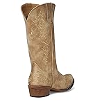 - Ladies' stylish cowboy boot in vintage beige faux leather, adorned with all-over embroidery. It boasts a snap toe, cushioned insole, flexible TPR sole, 12-inch shaft, and faux leather construction. Features include a fabric lining and a 1.5-inch heel.