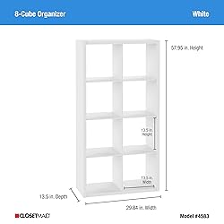 ClosetMaid 4583 Heavy Duty Decorative Bookcase Open Back 8-Cube Storage Organizer in White with Hardware for Closet, Office, or Toys, 57.95" H x 29.84" W