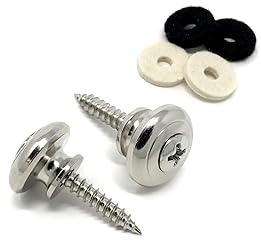 - Features: High quality Vintage Forge Nickel metal strap button set comes complete with 2 buttons, 2 matching screws, and 4 felt washers (both black and white). These are Mushroom Head 15mm strap buttons and will fit virtually any Acoustic or Electric Guitar, Bass, Mandolin and Ukulele. Easy to install. Specifications: Material: Metal Finish: Nickel Button Diameter: 15mm Height: 9mm Screw Length: 25mm (16.5mm exposed) Weight: 14g (0.5oz)