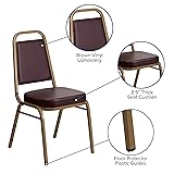 EMMA + OLIVER Trapezoidal Back Vinyl Stackable Banquet Chair, Multipurpose Stacking Chair with Padded Seat and Back, Brown/Gold
