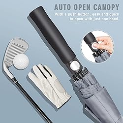 【LARGE GOLF UMBRELLA WHICH IS WARM HAVEN】The oversized golf umbrellas 62 inch is a haven for golf lovers,businessmen and daily travel.The grey golf umbrella windproof with a diameter of 135 cm can shield 1-3 people from the wind and rain.The warmth under the umbrella warms each other's shoulders 【TOUGH AND STRONG DOUBLE CANOPY GOLF UMBRELLA】The extra large golf umbrella is made of glass fiber with high toughness,which is strong.The golf umbrella double canopy vent design is adopted to weaken the wind and resist strong wind.Our golf push cart umbrella is like a tall and straight tree,standing upright with a waist pole,standing in the wind and rain with tenacious vitality,and welcoming wind and rain with the best posture 【TO BE A FREE SOU】EVA breathable soft super large handle,large automatic opening button,comfortable and labor-saving,ready to open the golf umbrella lightweight.Beautiful and fashionable golf umbrella cover.Put the sturdy umbrella into the umbrella cover and change into a chivalrous man.Walk the world with a sword.Be a hero walking in the wind and rain.The soul of freedom is unstoppable 【PERFECT COMPANION】The fashionable and big golf umbrella for rain can be installed on the golf cart to start an elegant golf activity.The heavy duty golf umbrella can also accompany you to an important business event to show a mature,low-key and tasteful life.Simple and luxurious large umbrella is the perfect companion for daily travel life 【RELIABLE BRAND】ZOMAKE huge umbrella has accompanied more than 500,000 customers through trials and tribulations with its high-end atmospheric appearance and high-quality quality,creating countless warm memories together.Whether it's a rainy spring or a windy winter,ZOMAKE golf umbrella automatic open will always be with you