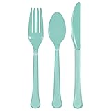STYLISH CUTLERY SET: Elevate your dining experience with our 24 Pc. Robin's Egg Blue Plastic Heavy Weight Assorted Cutlery Set - designed to impress at any event, party, or daily use! DURABLE & HEAVY WEIGHT: Crafted from premium quality plastic, these utensils are sturdy and reliable, providing a heavy-weight feel and resistance to breakage for a comfortable dining experience. EASY CLEAN-UP & ECO-FRIENDLY: Enjoy hassle-free clean-up after your event with our disposable cutlery set, made from recyclable and eco-friendly materials for a guilt-free dining experience. EYE-CATCHING ROBIN'S EGG DESIGN: Stand out from the crowd with our vibrant robin's egg blue-colored cutlery set, which adds a touch of sophistication and charm to any table setting or event decor. IDEAL FOR ALL OCCASIONS: Whether you're hosting a wedding, a birthday party, or a casual gathering, our robin's egg blue utensils combine elegance and functionality, ensuring a memorable event for your guests.