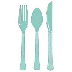 - Features a robin's egg blue plastic cutlery set has plastic Forks, knives, and spoons. Perfect for dinner party, birthday, or themed party
