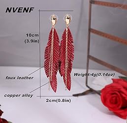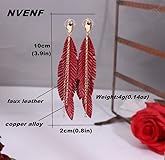 🌸🌸UNIQUE FASHION DESIGN BOHO LEATHER FEATHER EARRINGS➤ black feather statement earrings metal feather gold-tone alloy chain tassel drop earrings. The contrast of metal chain tassel with the faux leather feather is both modern and elegant. wear this fun pair of dangles to add instant on-trend appeal to your look 💕💕EXCELLENT MATERIAL AND MOST POPULAR SIZES➤ these earrings are made from very soft thin genuine leather. They are super light and comfortable for everyday use, you will forget that you are wearing them. You will receive back stoppers so that you do not lose them.Approximate length: 9 cm(3.5 inch),width:2cm(0.78 inch), Weight:4g(0.14oz) 🎁🎁 SUITABLE FOR MANY OCCASION & BEST GIFTS➤ These faux leather feather dangle earrings are inspired by bohemian traditional culture and available in three-color styles. If you are going out to a party or banquet,this cute jewelry is the perfect accessory that will enhance your outfit. No matter birthday, Mother's Day, Christmas, Valentines Day, wedding, anniversary, etc. Treat yourself or someone special to this feminine add chic finishing touch antique looking drop earrings 💎💎 AUTHENTIC FASHION LADY’S TASSEL PENDANT EARRINGS➤ These leather earring embellished drop earrings for womens. As a gift for her/your friend/wife/best friend/mother/ladies is a good idea 📞📞After-Sale Service➤ If you have any quality problems please do not hesitate to contact our friendly support team, We will give you refund or replacement