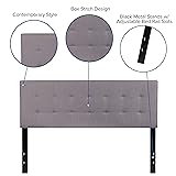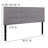 If your bed isn’t dressed up with a headboard, your room is missing out. Let this beautiful, tufted headboard help reflect your personal style and make your retreat a cozy, comfortable haven to return to after the rigors of daily life. Light gray fabric upholstered panel headboard, Headboard Size: 61.5"W x 3"D x 24"H Black metal stands with adjustable bed rail slots Contemporary style headboard PRODUCT MEASUREMENTS: Overall Size: 61.5"W x 2.5"D x 41.75-54.25"H