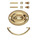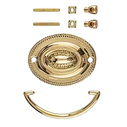 Dimensions: 2 1/2" Centers; 2-3/8" High x 3" Wide - Backplate Size. This drawer pull is made of stamped brass. The package contains one bail, one backplate and two eyebolts with nuts. This Hepplewhite bail pull is easy to install and gives a traditional look to your furniture piece. It perfectly complements an antique dresser, cabinet, armoire, bedside table, desk, chest, and more. Our handles are a nice feature for completing an antique restoration or woodworking project. Using these pulls on kitchen or bedroom furniture can also add a vintage touch to modern home decor.