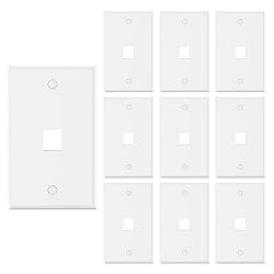 EASY CABLE MANAGEMENT: Compatible with standard keystone jacks, the 1-Port Wall Plate creates a new interface location for network, audio, or other signals on the wall and hides excess cables behind walls, suitable for home theater use VERSATILE COMPATIBILITY: The keystone plate is well-suited with standard low-voltage mounting brackets and standard keystone jacks, such as HDMI, RJ45, 3.5 mm, Coaxial, and RCA. Keystone modules fit snugly in the port and won't pop loose once they're seated UL-LISTED SAFETY AND SECURITY: The UL-listed ABS Ethernet wall plate cover features flame-retardant and impact-resistant material. The solid and sturdy construction ensures a risk-free, reliable, and safe network connection for your peace of mind TRUE WHITE FOR SEAMLESS MATCH: Experience a clean match with typical household decor. The pure white single-gang outlet gloss finish blends seamlessly with white walls, and the included white-headed screws add a nice finishing touch to the install WHAT YOU WILL GET: VCE Keystone Wall Outlet (10 Pack, 1 Port, White), 20 matching white-headed mounting screws, and our 24/7 customer support. Easy installation with a Phillips or flathead screwdriver